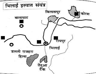 वर्तमान छत्तीसगढ़ के दुर्ग जिले में भिलाई इस्पात संयंत्र की स्थापना 1957 ईस्वी में द्वितीय पंचवर्षीय योजना के दौरान सोवियत संघ के तकनीकी सहायता से की गई थी यह भारत का क्षेत्रफल की दृष्टि से सबसे बड़ा इस्पात संयंत्र है एवं एक बड़ा लोहा इस्पात उत्पादक संयंत्र है भारत की रेल की पटरियों का उत्पादन इसी क्षेत्र में होता है
